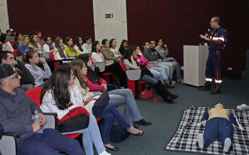A atividade aconteceu na tarde de sexta-feira (24) e foi ministrada pelo professor de Cardiologia Dr. Rodrigo Nicácio Santa Cruz, com o apoio da equipe do Núcleo de Educação Permanente do Serviço de Atendimento Móvel de Urgência (SAMU). "A iniciativa do Centro Acadêmico é fantástica. É um primeiro contato que o aluno tem com esse tipo de intervenção, são manobras simples, que podem salvar vidas. São mais de 70 acadêmicos que depois do treinamento têm condições de intervir em uma situação de parada cardiorrespiratória", explica o professor Rodrigo.