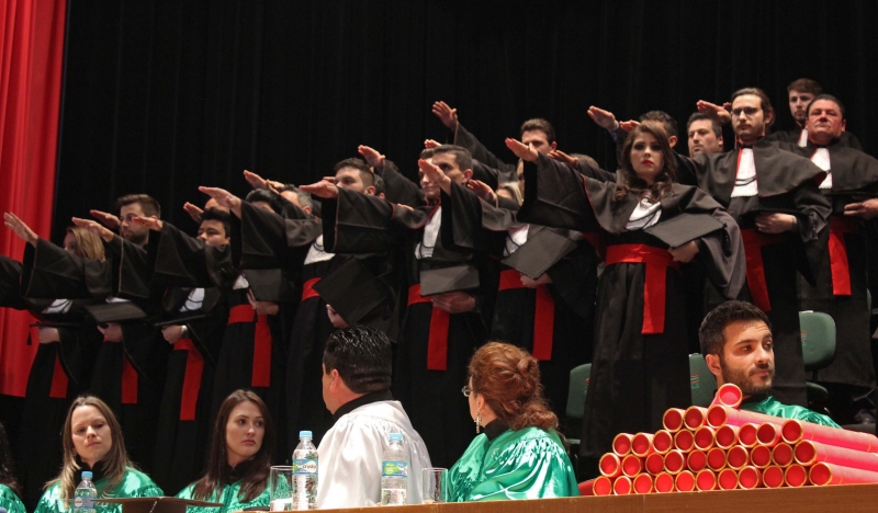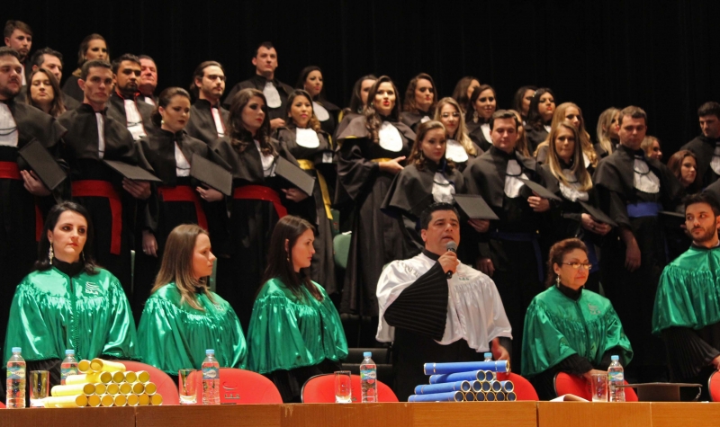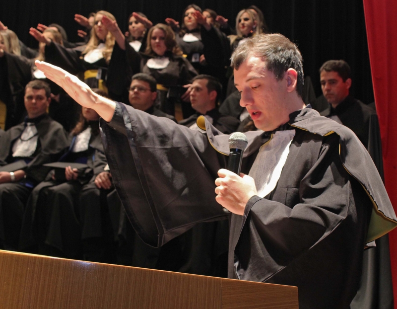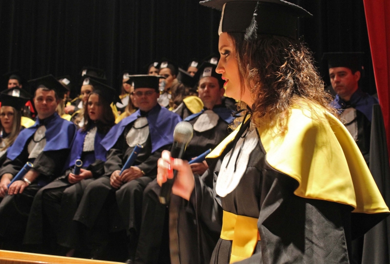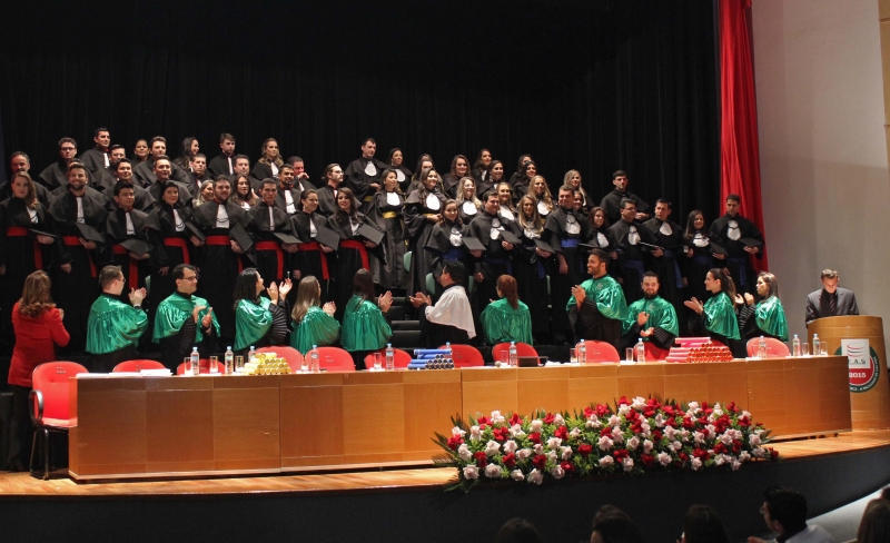 Nilmar Adriano Paz de Moura, orador do curso de Direito, declarou que é preciso seguir os caminhos que o conhecimento proporciona e valorizar as conquistas da vida. A Paraninfa professora Denise de Lima Gimenez Molina deixou conselhos e valorizou os dez mandamentos dos advogados. O laureado do curso de Direito foi Igor Kenji Sato.