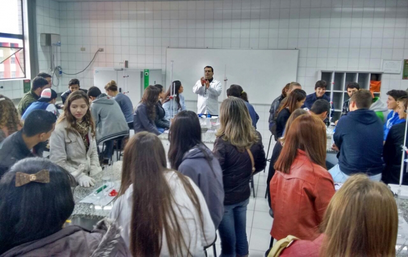 O curso de Farmácia da FAG realizou, na última sexta-feira (24), a oficina "Determinação do teor de AAS em comprimidos", para os alunos do ensino médio do Colégio Estadual Campina da Lagoa. 50 alunos do 2º e 3º anos estiveram na Faculdade acompanhados pela Diretora Lorecy de Matos Cursi.