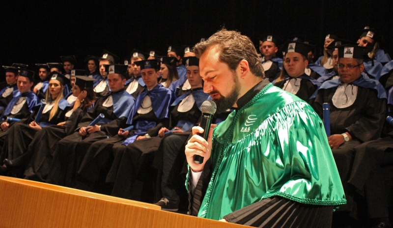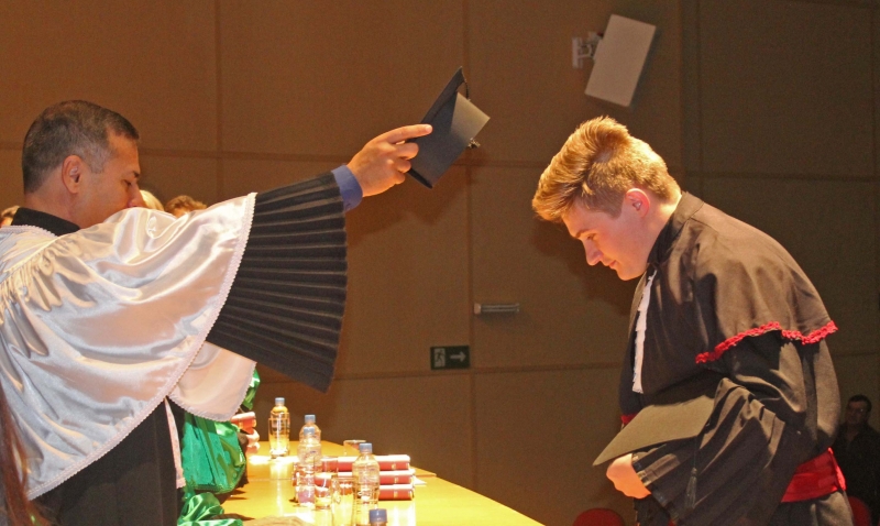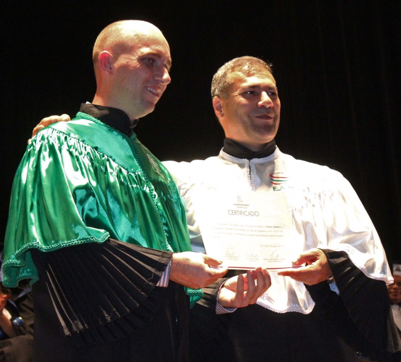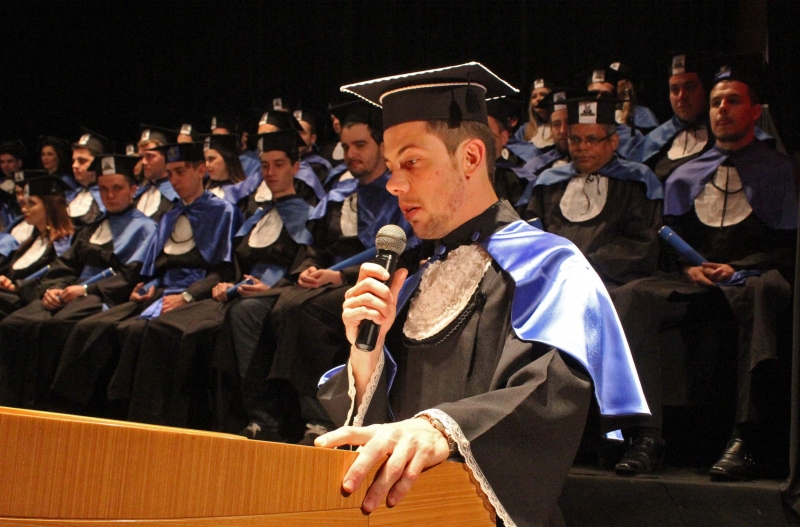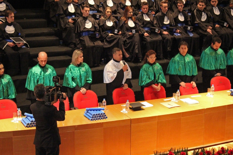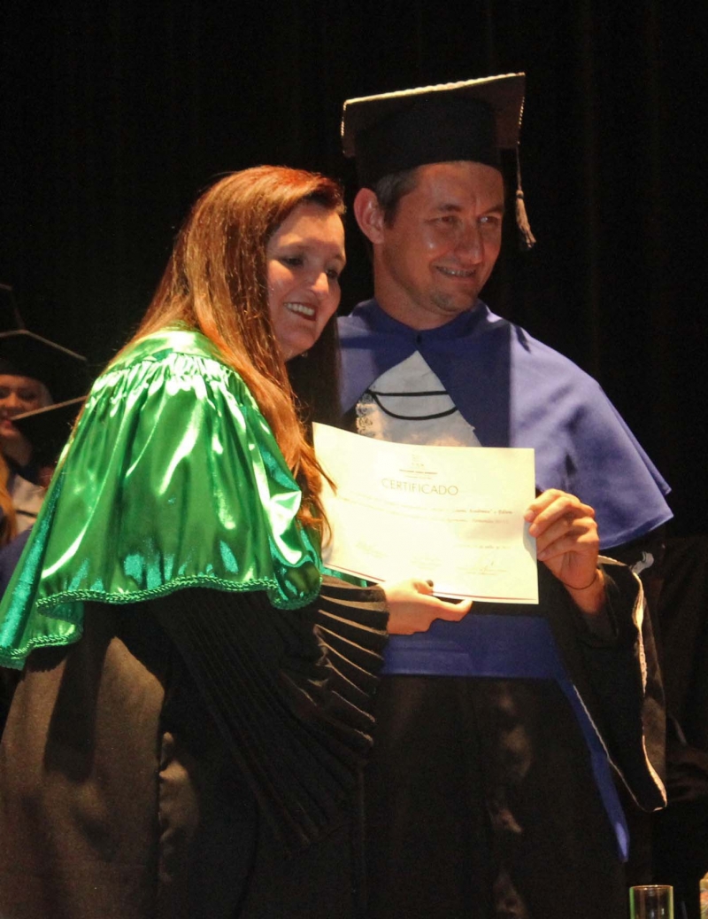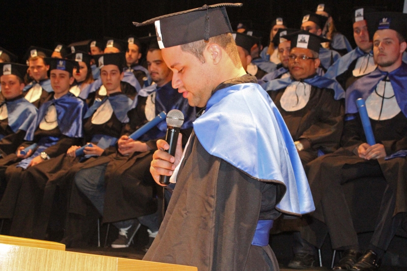 Para representar os formados em Engenharia Mecânica, Amauri Ghellere Garcia Miranda demonstrou ser recompensador ter a tarefa cumprida e agradeceu aos familiares pelo apoio. O Paraninfo professor Roberson Roberto Parizotto sugeriu que os formados sejam determinados, ousados, éticos e responsáveis, além de usar da sabedoria nas decisões a serem tomadas. O Coordenador do Curso professor Emerson Eduardo Formigoni fez a entrega da láurea acadêmica para Junior Martinho Colaça Brum.
