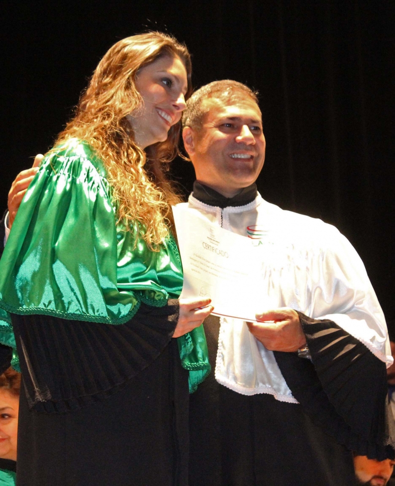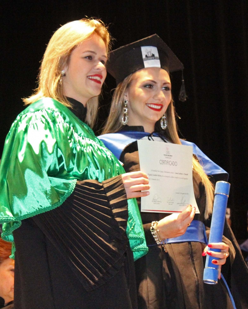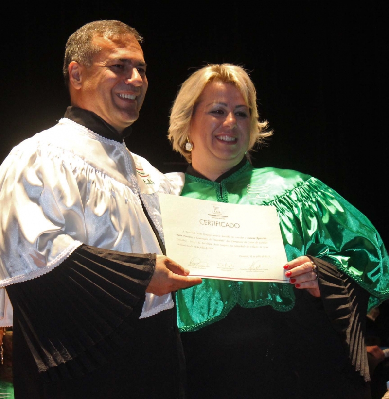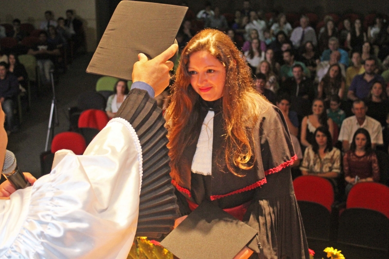 Representando o curso de Ciências Contábeis, Ketleen da Glória recordou os anos da graduação e agradeceu o apoio dos familiares que estiveram sempre presentes. A Paraninfa do Curso professora Suzana Aparecida Burin Ponciano proferiu palavras doces aos formados, para abraçarem a profissão com amor, acreditar na ética e no bom senso, e também, traçar novos caminhos, buscar novos horizontes e conhecer novas estradas. A Coordenadora do Curso de Ciências Contábeis, professora Marcia Kounrouzan fez a entrega da láurea acadêmica a formada, Rumi Iljima Patiño Cruzatti.