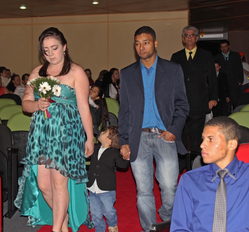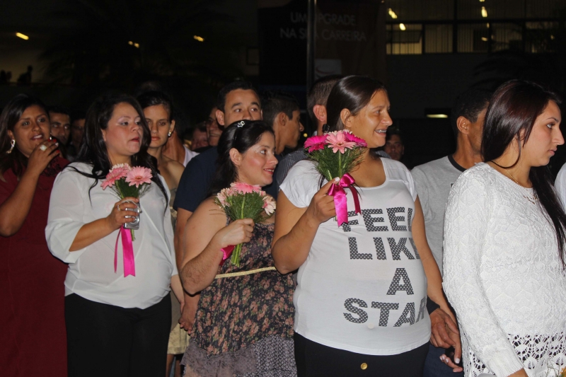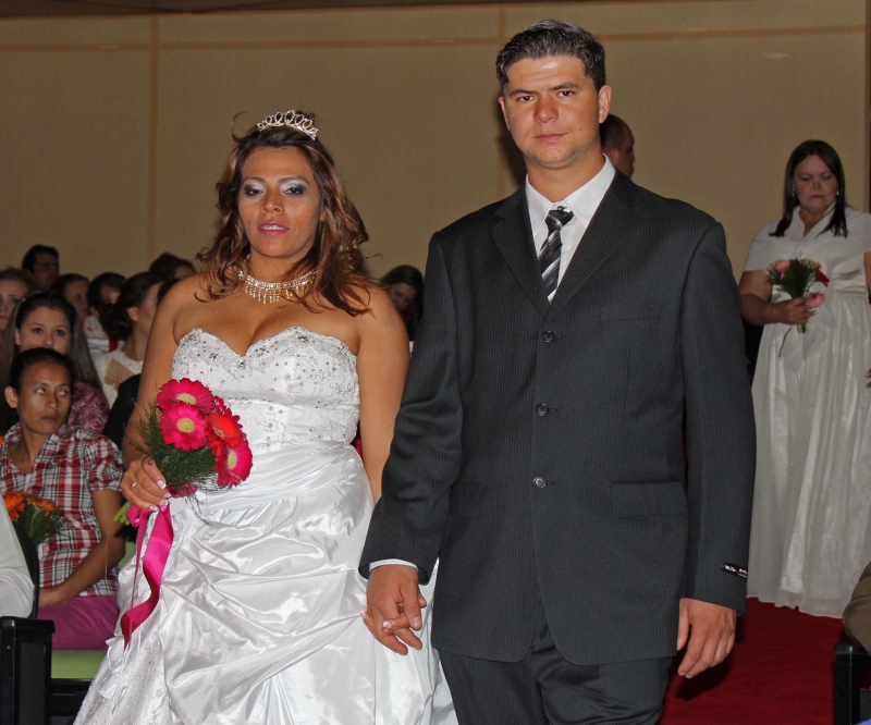 Cada casal com seu jeito peculiar tiveram seus poucos, porém, valiosos minutos no tapete vermelho, onde entraram para celebrar a união. Uma cerimônia repleta de emoções e com belos cantos de amor permitiu aos noivos realizarem o grande sonho que é o casamento. Elizangela Claudino da Silva e Rodrigo Onegreiro da Silva oficializaram a união. "Para nós é importante estar casado no civil e no religioso e estamos felizes por realizar o sonho do casamento", contam. Alcione da Silva e Marivania Vicente Teixeira da Silva também participaram do casamento coletivo. "O amor e o respeito fizeram com que nós decidíssemos vivem em comunhão e em união de acordo com a lei", finalizam.