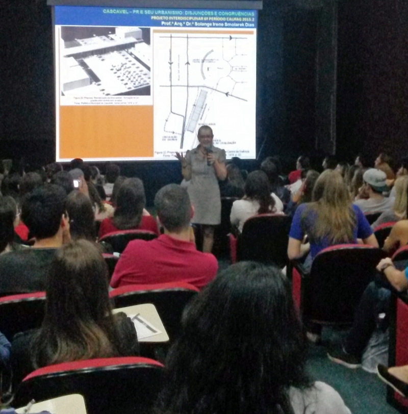 Outra atividade do Projeto foi a participação dos alunos, no último dia 03, em uma palestra ministrada pela coordenadora do curso de Arquitetura e Urbanismo da FAG, professora Solange Smolarek Dias, com o tema: "Cascavel e seu Urbanismo: disjunções e congruências". A proposta foi acrescentar conhecimento aos alunos para o desenvolvimento do tema sobre Museu da Colonização para Cascavel. De acordo com relatos dos alunos a palestra foi muito boa, e ajudará a embasar os conceitos projetuais para a proposta solicitada. A avaliação dos professores que estavam organizando o evento também foi positiva, "os alunos compareceram maciçamente, e estavam muito ansiosos pela fala da Professora Solange", destacam.