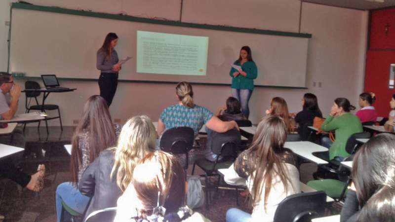 A atividade consistiu na socialização dos projetos de pesquisa, que culminarão no Trabalho de Conclusão de Curso - TCC, pelos alunos do 8º período de Pedagogia. O segundo momento será a apresentação dos trabalhos finais, no dia 03 de outubro.