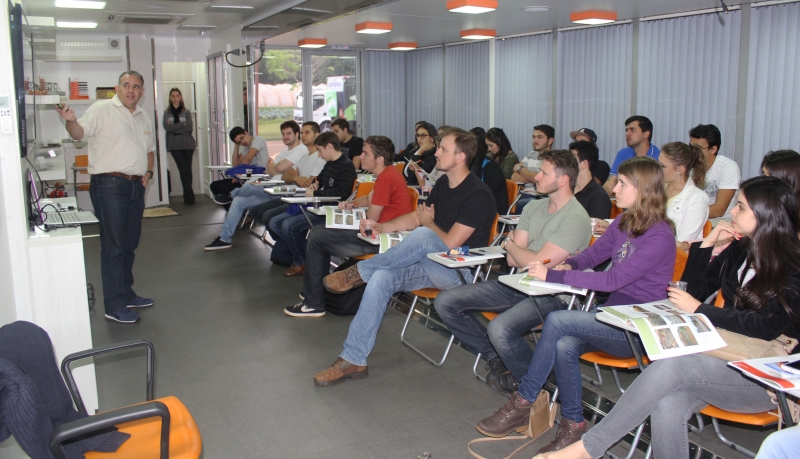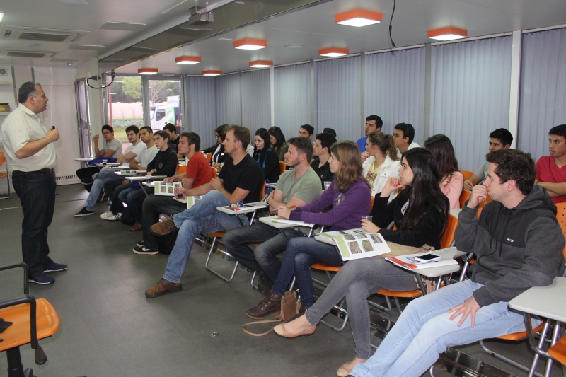 Programa Mestre ArcelorMittal trouxe o caminhão escola até a faculdade para ministrar o curso aos acadêmicos