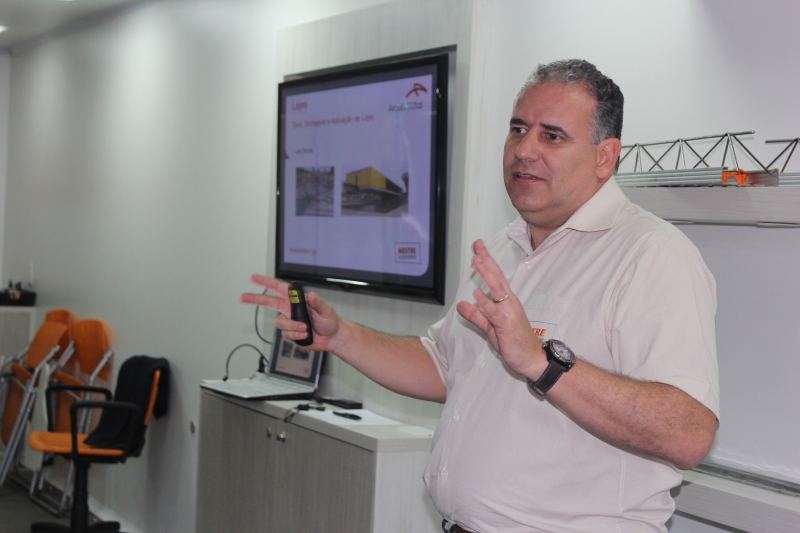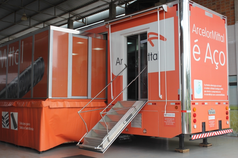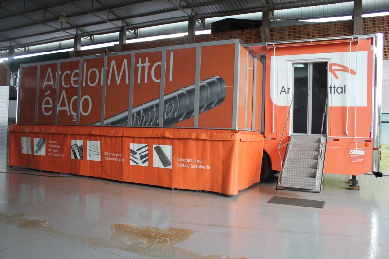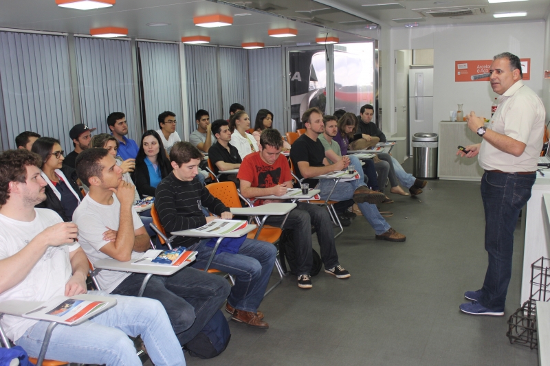 O curso, ministrado pelo engenheiro civil e professor da ArcelorMittal, Mauro Henriques de Arruda, aconteceu dentro da Carreta destinada a percorrer todo o Brasil levando conhecimento a Universidades, Empresas de modo a atender ao público de Arquitetos, Engenheiros, Mestre de Obras e Serventes. "O projeto existe desde 2007 e, além de trazer novos produtos, tem como objetivo contribuir com a engenharia, especificamente sobre concreto armado, desde a fundação, até a parte de execução de alvenaria, passando por estrutura. Assim, buscamos trazer um enfoque para consolidar conceitos e trazer experiências de quem já está no mercado de trabalho, levando vivências da vida profissional e, dentro desse avanço de tecnologia, trazer as novidades do mercado para que tenham ideia dos materiais que podem estar usando", explica Mauro.