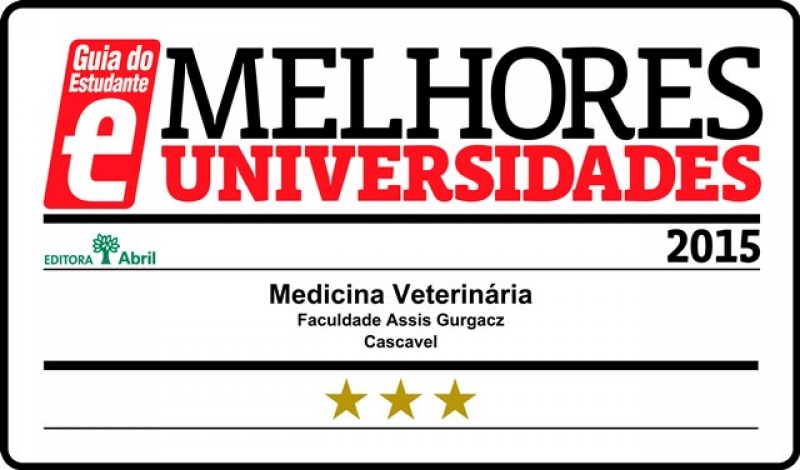 O coordenador de Medicina Veterinária, professor Adriano Ramos Cardoso, complementa que o conceito bom do curso se deve ao corpo docente qualificado, às instalações físicas, principalmente o Hospital Veterinário e à nota conquistada no Enade. "A intenção é chegar a quatro estrelas no próximo ano", declara.