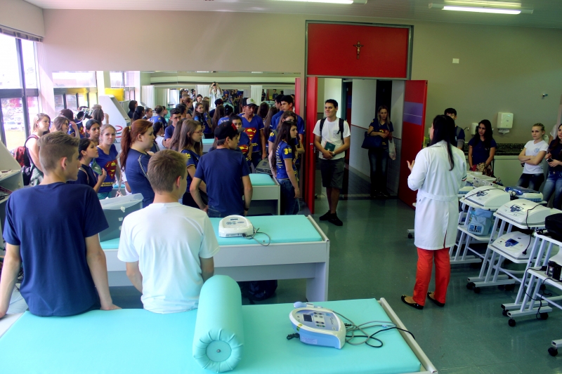 O roteiro da visita incluiu o Complexo esportivo, onde foi feita exposição do curso de Educação Física. Os estudantes também conheceram o curso de Agronomia, na estrutura do Centro de Desenvolvimento e Difusão de Tecnologias - CEDETEC. No Hospital Veterinário eles visitaram os espaços e souberam um pouco sobre os serviços oferecidos para a comunidade. A aluna Ana Maria Candido, do 3º ano, do Colégio Estadual Marechal Arthur da Costa e Silva, de Terra Roxa, ficou encantada com a estrutura do Hospital Veterinário. "Eu sempre gostei de Veterinária, é o curso de pretendo fazer. E tudo o que vi aqui na FAG me fez ter certeza da minha escolha. A estrutura é ótima, perfeita", afirma.