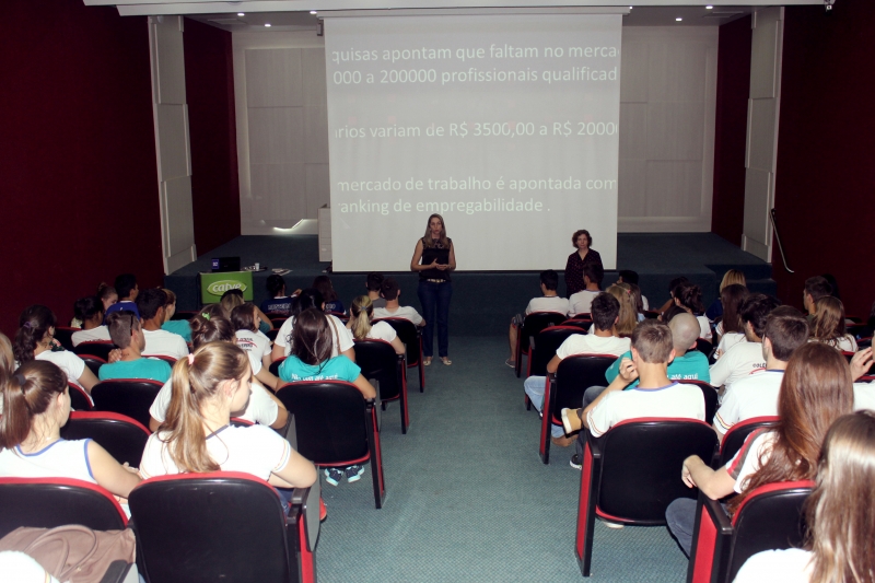 No auditório do Bloco 04, as coordenadoras de Ciências Contábeis, Direito, Sistemas de Informação e Sistemas para Internet apresentaram as especificidades de cada curso e do mercado de trabalho.