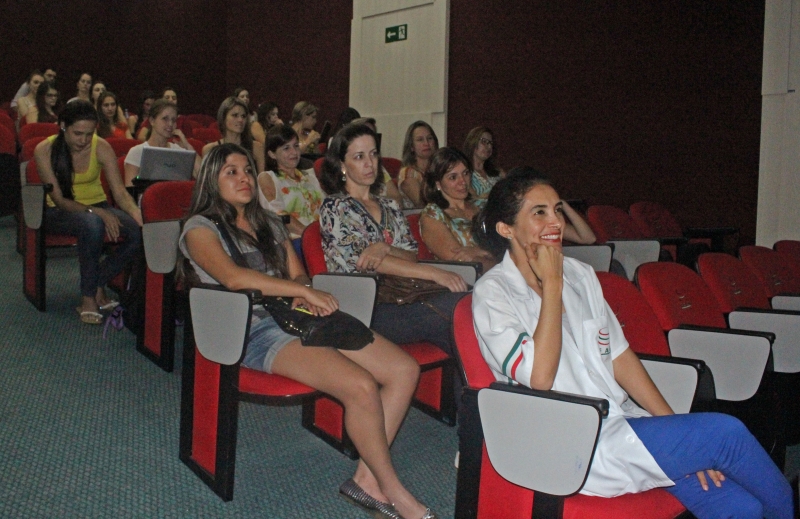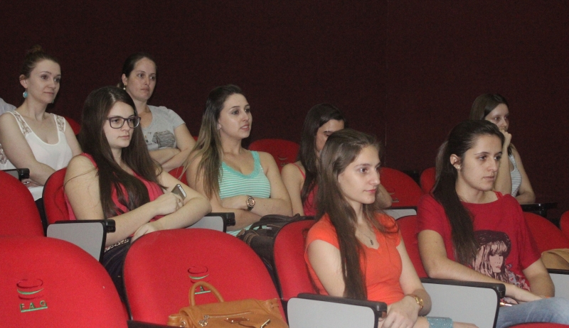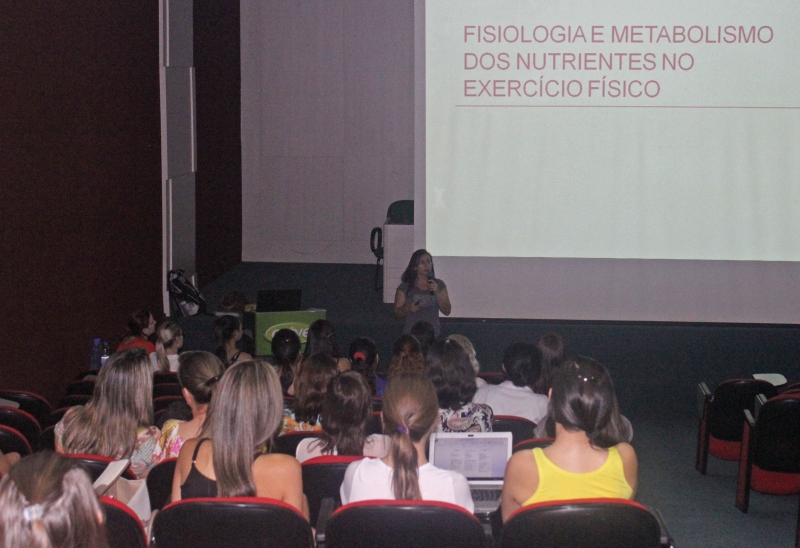 Taís Marioto Cezar, docente do curso de Nutrição da FAG, ministra a disciplina de Nutrição e Esporte para o 6º período. "A palestra trouxe questões sobre a alimentação adequada para o praticante de atividade física ou atleta infanto-juvenil. As acadêmicas do 6º período curso de Nutrição esclarecem dúvidas sobre alimentação antes e depois do treino e durante competições", conta Tais.