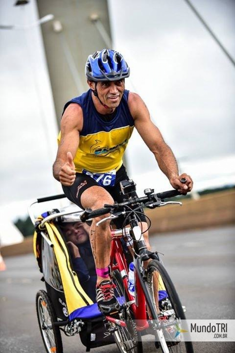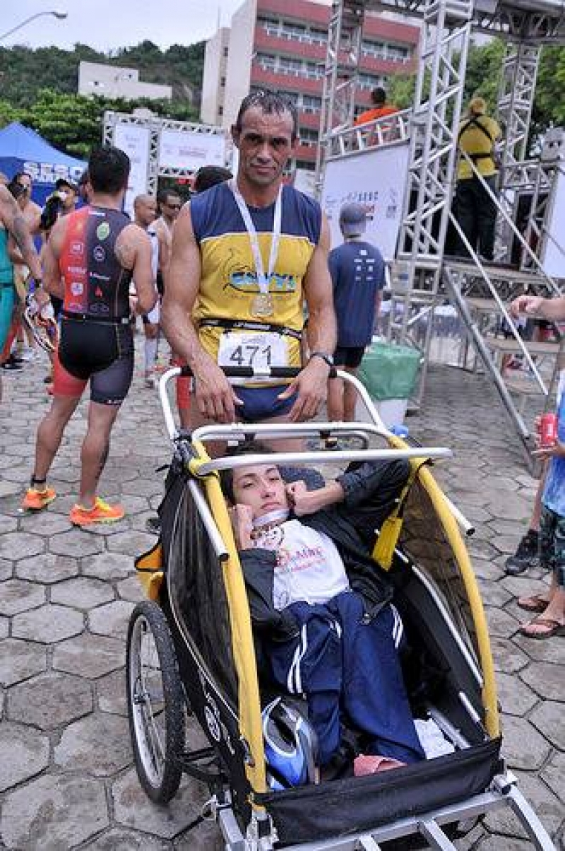 A prática do triathlon por si só já é uma superação. Mas José Rosa das Neves e seu filho Elkier são a prova de que se pode ir além. José é triatleta há 24 anos, participou de várias competições, mas num certo momento decidiu parar. E parou mesmo, só que de competir sozinho. "Em novembro de 2013 fizemos um duathlon que é corrida e ciclismo. Corri com o Elkier na cadeira de rodas, pedalei sozinho e finalizei correndo com ele na cadeira. Logo em seguida fizemos o primeiro triathlon em Caiobá, em dezembro do mesmo ano", conta José.