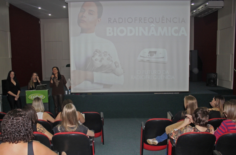 A palestrante Tereza Dantes trabalha na empresa Tone Derme, de Foz do Iguaçu, está na área de Estética há 20 anos e foi convidada pelas acadêmicas do 2º período para falar sobre radiofrequência. "É um equipamento que não pode faltar em clínicas de estética, pois trabalha com flacidez da pele e do corpo, o envelhecimento e linhas de expressão. Além disso, juntamente com os aparelhos de radiofrequência vamos trabalhar os leds que em conjunto geram bons resultados", explica.
