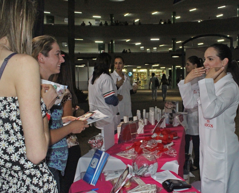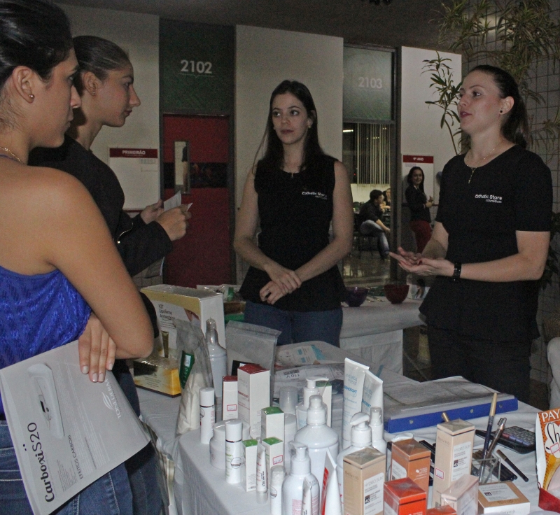 Durante toda a noite aconteceram exposições de produtos e atividades práticas na área de convivência do Bloco 2. As próprias alunas convidaram as empresas para exporem seus produtos e organizaram as palestras.