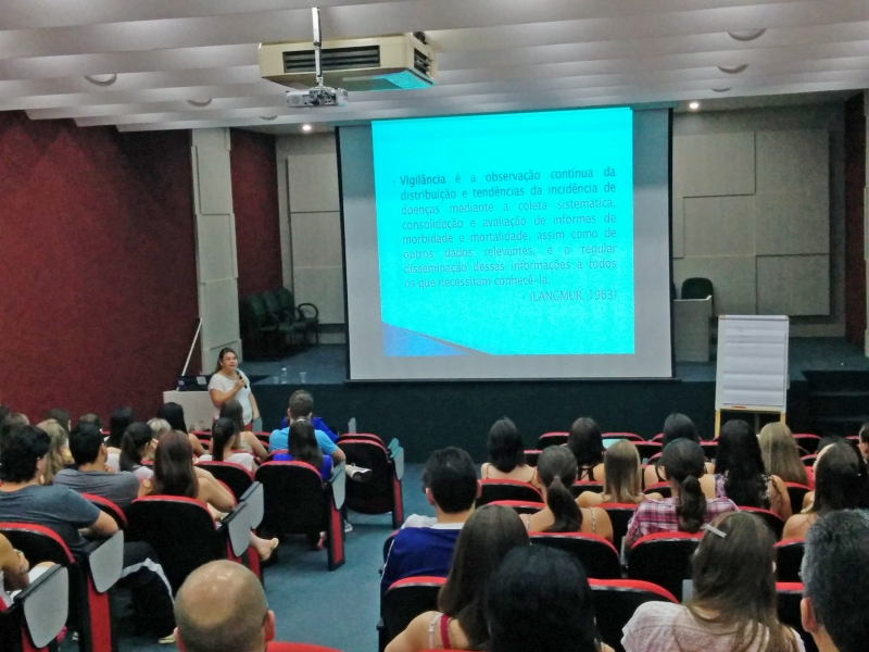 A palestrante iniciou fazendo uma contextualização da origem da Vigilância em saúde no Brasil e, posteriormente, abordou todas as áreas que o profissional farmacêutico pode atuar neste ramo, com destaque para a fiscalização de farmácias, manipulação, hospitais e indústrias de cosméticos, saneantes e de medicamentos. Segundo Claudete, o tema da palestra se volta ao Sistema Nacional de Vigilância Sanitária e a inserção do farmacêutico dentro da equipe de fiscais. "É importante para o conhecimento do trabalho do fiscal de vigilância sanitária enquanto profissional farmacêutico, uma vez que se torna necessário conhecer as legislações e suas atribuições, além de que é uma carreira que o profissional farmacêutico pode seguir", explica a farmacêutica da Vigilância Sanitária.
