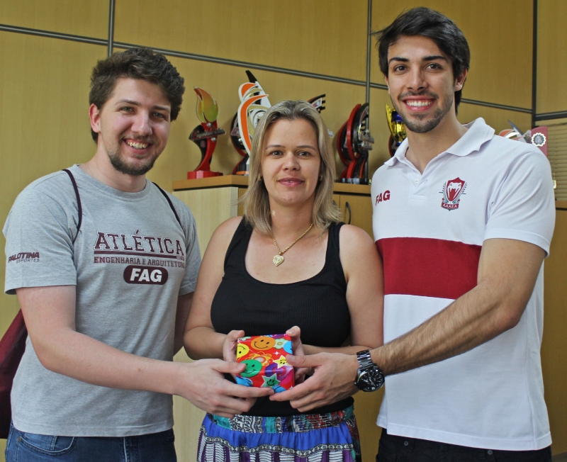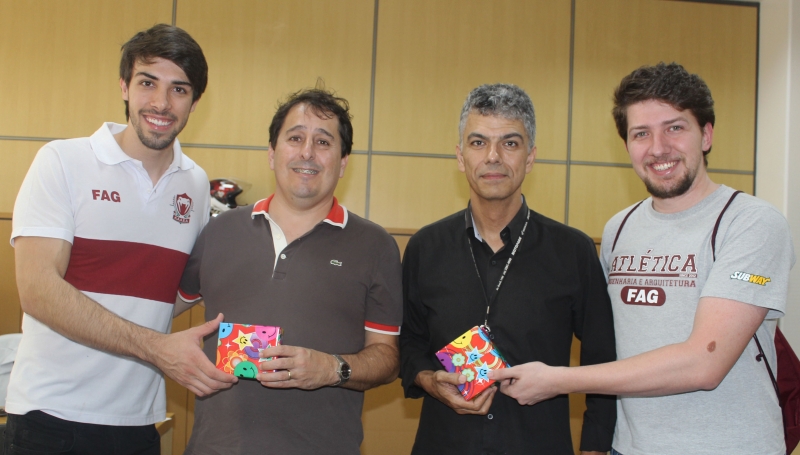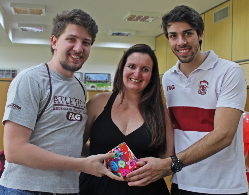 A Associação Atlética Acadêmica de Engenharia, Arquitetura e Agronomia (AAAEA) da FAG, presenteou, na tarde de hoje (15), os coordenadores dos cursos de Engenharia Civil, professora Débora Felten; Agronomia, professora Ana Paula Mourão Simonetti; Arquitetura, professora Solange Smolarek Dias; Engenharia Mecânica, professor Emerson Eduardo Formigoni e o coordenador adjunto de Engenharia Elétrica, de Controle e Automação e de Telecomunicações, professor Helder J. C. Carozzi.