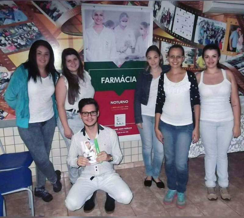 E na manhã de ontem (23), os alunos Mayra Lorenzatto Loures, Hiago Felipe dos Santos Galbardi, Pâmela Cristina de Souza, Helen de Oliveira, Kathleen M. R. Giongo e Priscila Salles da Silva estiveram no Colégio Estadual Carlos Argemiro Camargo, de Capitão Leônidas Marques. O tema da palestra foi: "Conscientização farmacêutica da Imunodeficiência Adquirida - HIV".