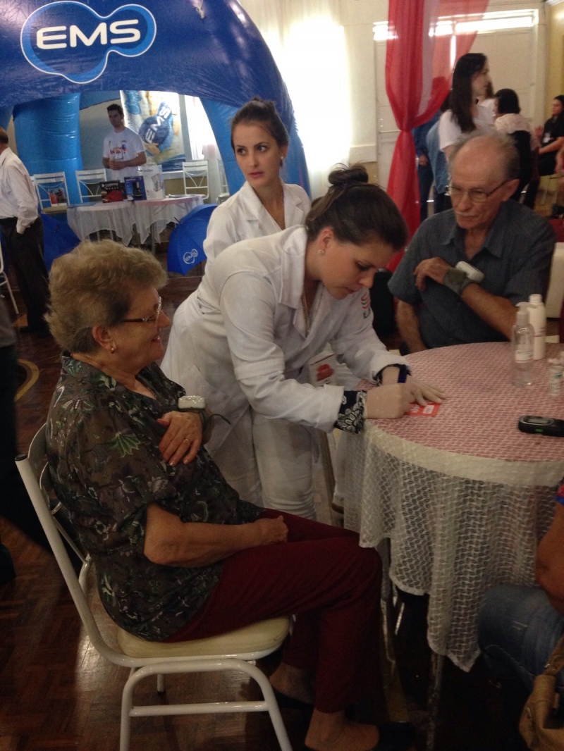 Os alunos do 4º e 6º períodos do curso de Farmácia da FAG participaram, no último dia 18, do Dia da Saúde, promovido pelas Farmácias Estrelas. Cerca de 80 colaboradores auxiliaram na organização e realização do evento que contou com a participação de mais de mil e duzentas pessoas da melhor idade.