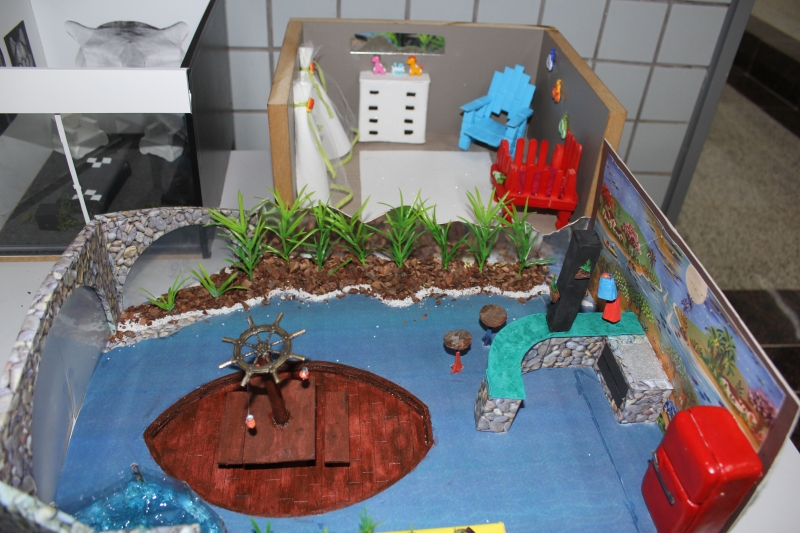 Matheus Kielek e Elton Bilibio, acadêmicos do 2º período, estiveram na exposição e contam que um dos trabalhos expostos foi confeccionado no 1º período do curso. "No início tínhamos dificuldade em escolher o material, uma vez que não possuíamos muita experiência", conta Matheus. Segundo eles, não é fácil adaptar a ideia ao material.