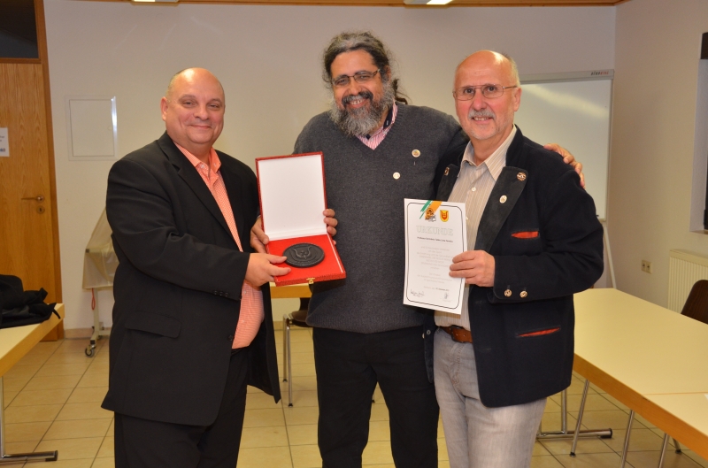 O coordenador do curso de Tecnologia em Alimentos da Faculdade Dom Bosco e professor do Curso de Agronomia da FAG, Dermânio Tadeu, recebeu do Moinho de Trigo da Alemanha o prêmio Brasão FESSLER MUHLE. A homenagem se deve ao reconhecimento pelo trabalho desenvolvido no Projeto Trigo, que envolve a promoção de cursos nacionais e internacionais de moagem de trigo, o laboratório de análises de qualidade de farinha de trigo, a realização de pesquisas e também intercâmbios de alunos da Alemanha.