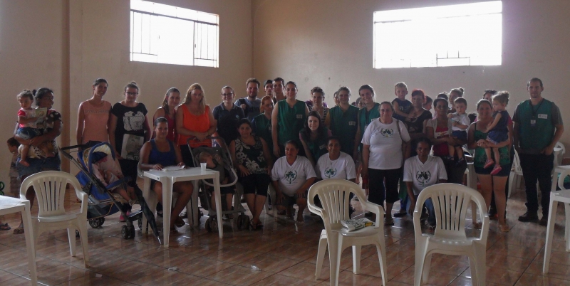 As alunas do 4º período do curso de Ciências Biológicas da FAG, Andressa Preussler, Carla Fachi, Clarice Barth, Débora Baretta e Geisi Alioncio, ministraram uma oficina de "Confecção de Brinquedos com Material Reciclável", juntamente com a Pastoral da Criança do Bairro Santo Onofre, de Cascavel.
