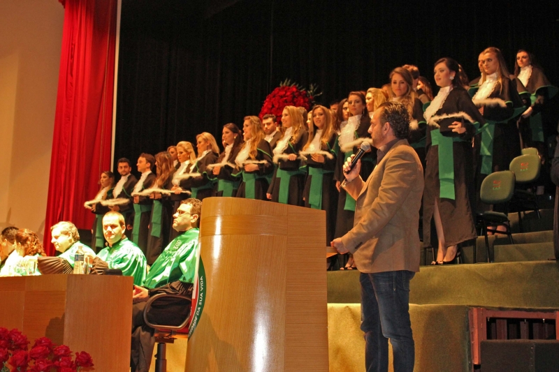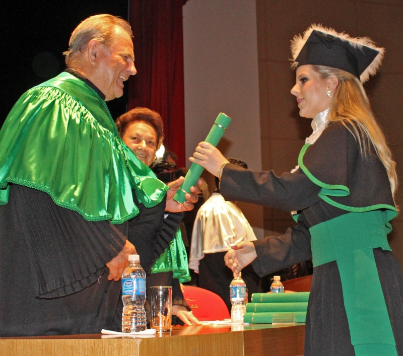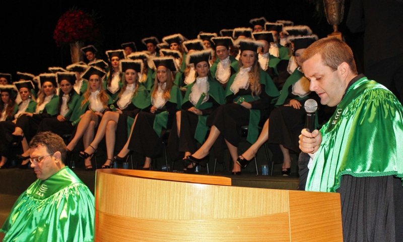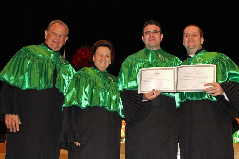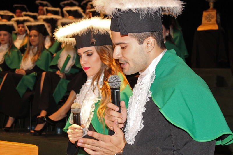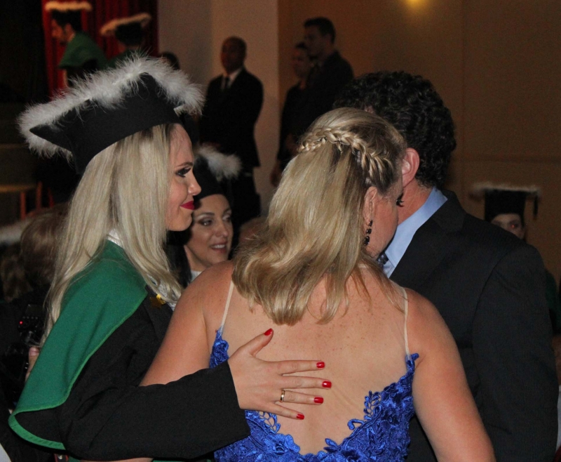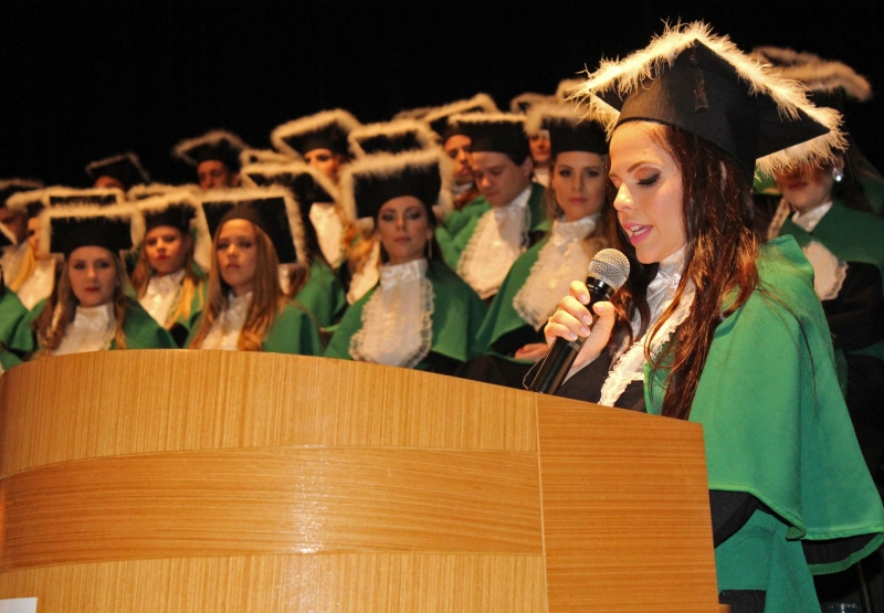 A formada Rafaela Freiria Mateus representou suas colegas ao receber a láurea acadêmica, pois obteve a maior média de notas no curso. O certificado foi entregue pelos seus pais. Rafaela também proferiu a homenagem aos professores e os pais foram homenageados da formada Francine Zanella Miotto.