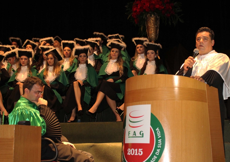 Na tarde de ontem (17), a Faculdade Assis Gurgacz realizou a colação de grau da 3ª turma de Medicina. Em solenidade realizada no Anfiteatro da Reitoria, se fizeram presentes o diretor acadêmico da FAG, professor Afonso Cavalheiro Neto, que presidiu a cerimônia; o Presidente da Mantenedora Assis Gurgacz e sua esposa Nair Ventorin Gurgacz; a diretora administrativa da FAG Jaqueline Gurgacz Ferreira; o coordenador do curso de Medicina, Dr. Rui Manuel de Sousa Sequeira Antunes de Almeida; o professor Kurt Juliano Sack Uscocovich, escolhido como paraninfo; o nome de turma professor Dr. Luiz Cesar Bredt, além dos formandos, professores, pais e familiares.