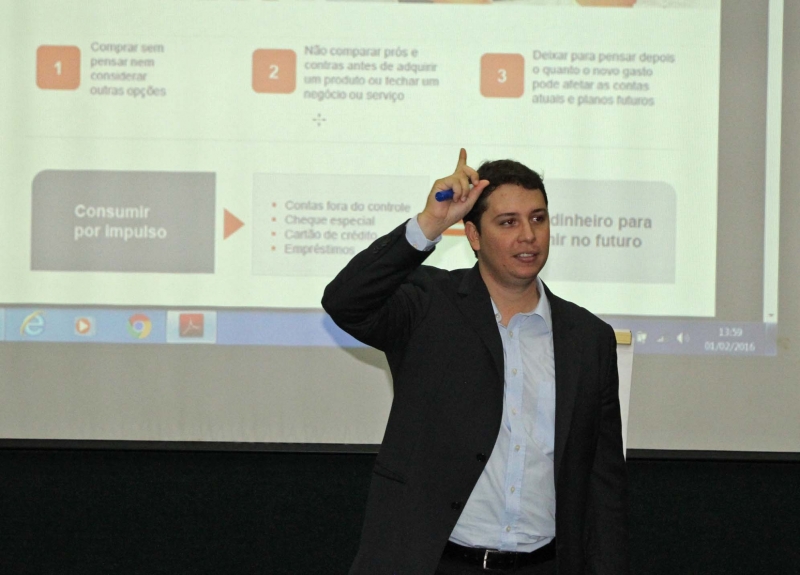 O palestrante Victor Hugo falou sobre consumo consciente, a importância de poupar e apresentou dicas com o intuito de conscientizar os funcionários sobre como utilizar melhor o seu dinheiro.