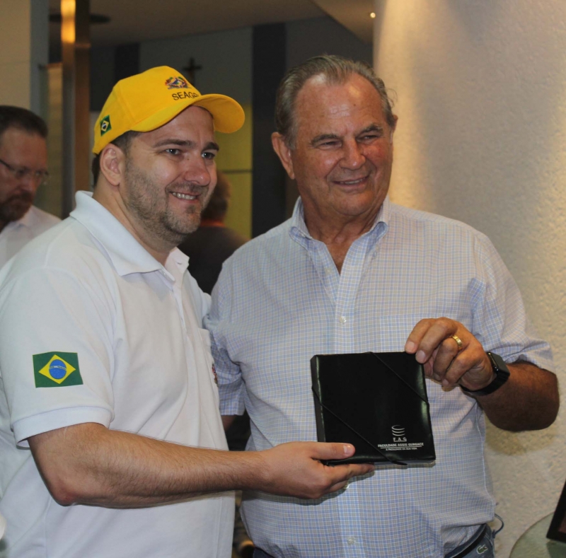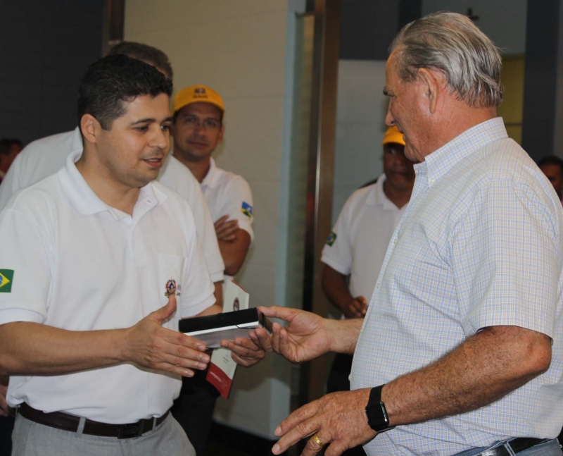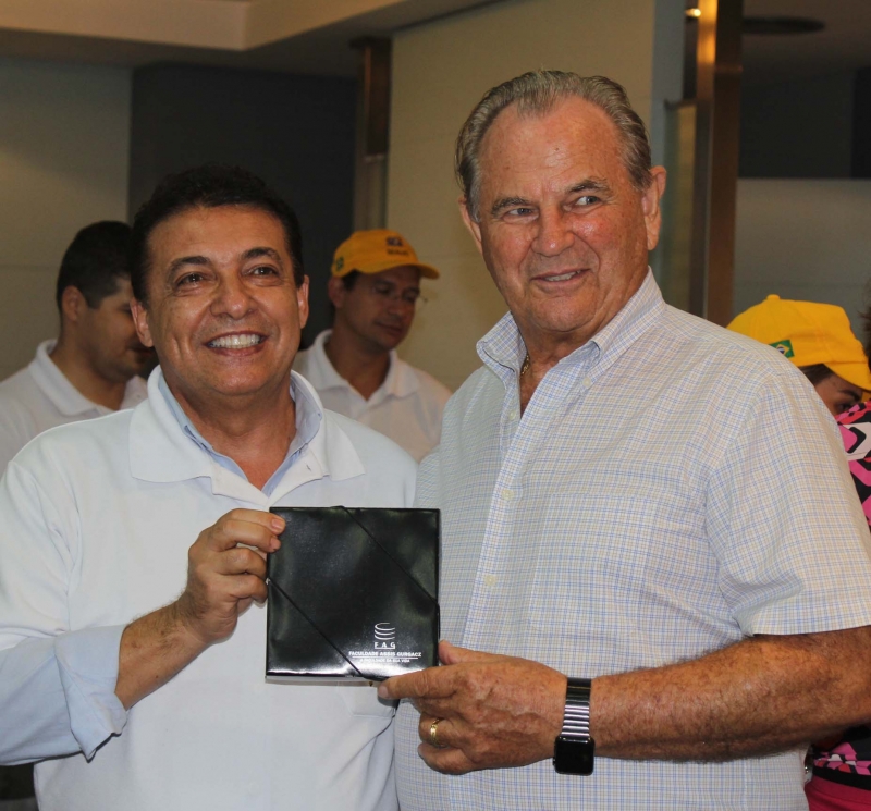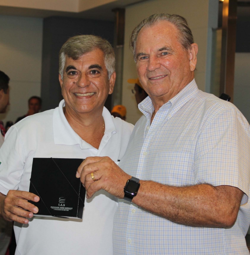 Ao final da visita, todos os integrantes da comitiva receberam uma lembrança das mãos do Reitor do Centro Universitário FAG.