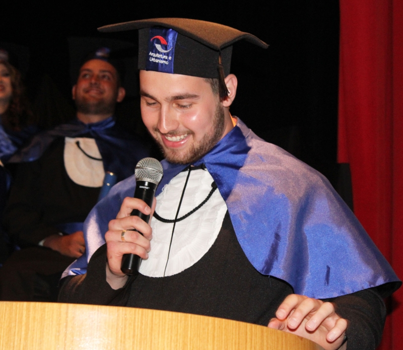 A segunda solenidade de outorga de grau dos formandos de Arquitetura e Urbanismo (Noturno) teve a mesa de honra composta pelo Paraninfo o professor Cezar Rabel, a Patronesse a professora Renata Esser e a Homenageada como Nome de Turma a professora Carolina De Morais Sonda. Também compõe a mesa de honra a Coordenadora do Curso professora Solange Irene Smolarek Dias. A formada Miriã Mayara Da Silva Ruiz foi a juramentista e Lorena Ita Refosco falou em nome da turma de modo a transmitir gratidão aos pais, docentes e colegas. O Paraninfo o professor Cezar Rabel deixou o sentimento de força e coragem para os afilhados.