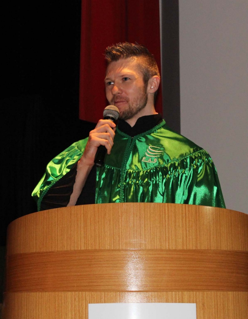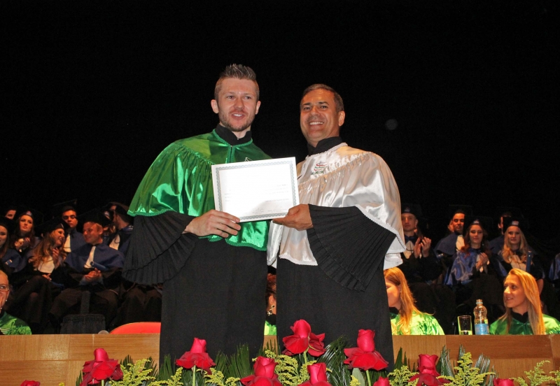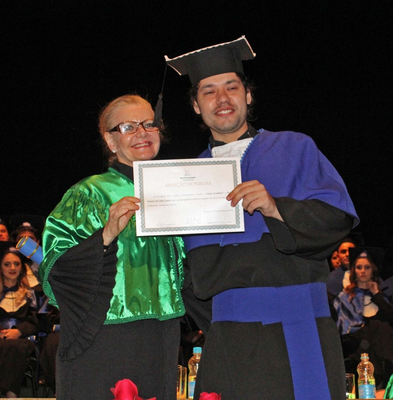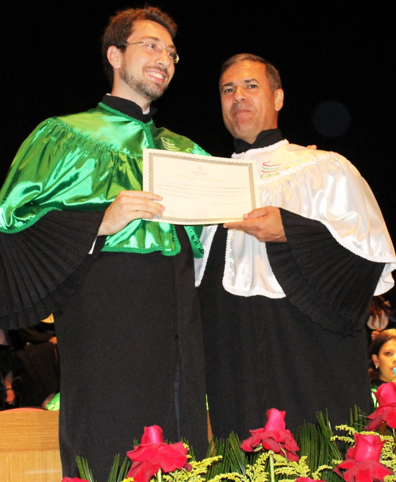 Ao final da cerimônia, Pedro Pereira foi homenageado com a láurea acadêmica por obter maior média de notas do curso.