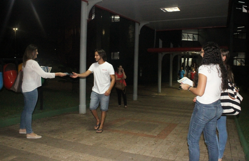 Os alunos de todos os períodos do curso de Enfermagem do Centro Universitário FAG, juntamente com a Secretaria de Saúde, desenvolveram, na última sexta-feira (19), uma ação social de conscientização contra o Aedes Aegypti. Através da entrega de panfletos para os acadêmicos de todos os blocos do Centro Universitário FAG e da Faculdade Dom Bosco, as orientações aconteceram com o objetivo de alertar a todos.