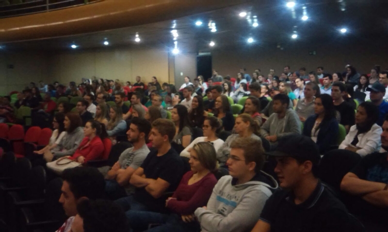 Na manhã de ontem (23) e na tarde de hoje (24), calouros dos cursos de Agronomia, Direito, Engenharia Civil, Educação Física, Psicologia, Arquitetura, Medicina e Medicina Veterinária, todos diurno, participaram de uma recepção de boas-vindas e atividades de orientação, no auditório do Bloco 1.