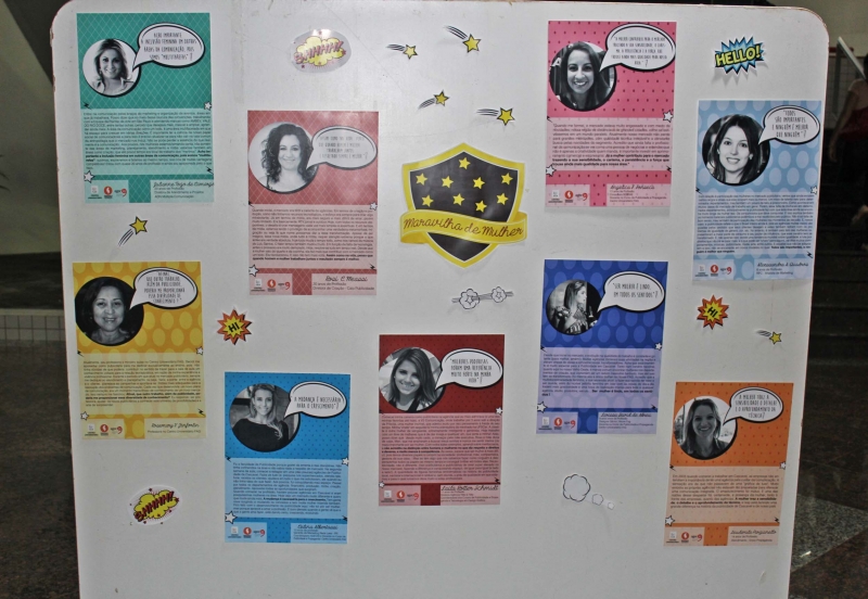 Nesta segunda-feira (07), a Agência Experimental de Comunicação Integrada (Agecin) montou uma Exposição em comemoração ao Dia da Mulher, intitulada "Maravilha de Mulher". Os pôsteres, com mulheres publicitárias, ficarão expostos até sexta-feira (11), no Bloco 2. "No decorrer da semana passada, publicamos nas redes sociais do curso de Publicidade e Propaganda os cards em homenagem a essas mulheres e tivemos uma repercussão excelente. Conversamos com elas a respeito do desenvolvimento da publicidade em Cascavel nos últimos anos e de que forma as mulheres participaram (e continuam participando) disso", destaca a coordenadora da Agecin, Celina Albertassi.