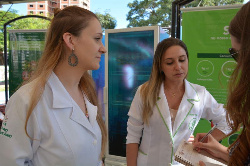 Gabriela Muraro também é acadêmica. Ela está no 7º período do curso e, antes do Agita Tancredo, já havia feito trabalho semelhante no Show Rural Coopavel. Porém, segundo ela, é totalmente diferente atender o público que veio até o Agita por conta da variedade dele. "Vem gente de todos os cantos da cidade. Tem pessoas querendo perder peso, tem outras que querem orientações porque seguem uma vida esportiva mais ativa e outros que vêm até aqui para pedir dicas de alimentação pré-treino, pós-treino e para outros momentos do cotidiano", comenta. Gisele Taise, também do 5º período, concorda. "Hoje a gente veio dar orientações nutricionais, 10 passos para uma alimentação saudável, diminuição da quantidade de iodo, sal e açúcar na dieta e é interessante ver que o pessoal está aberto a receber as nossas orientações. Isso mostra que o público conhece mais a nossa função no bom desempenho da saúde", observa.