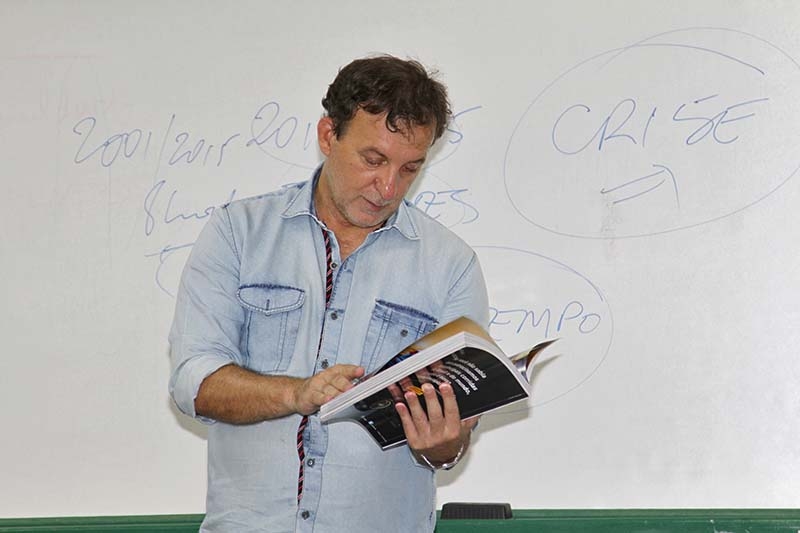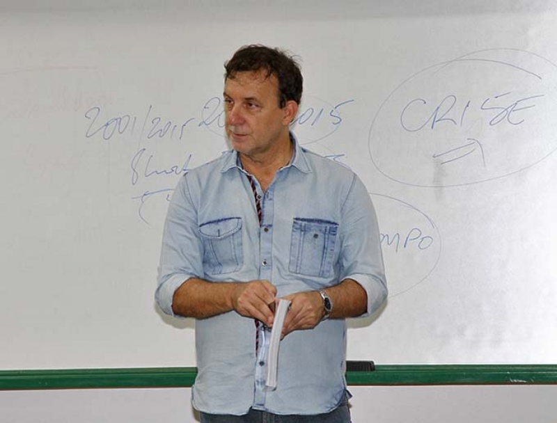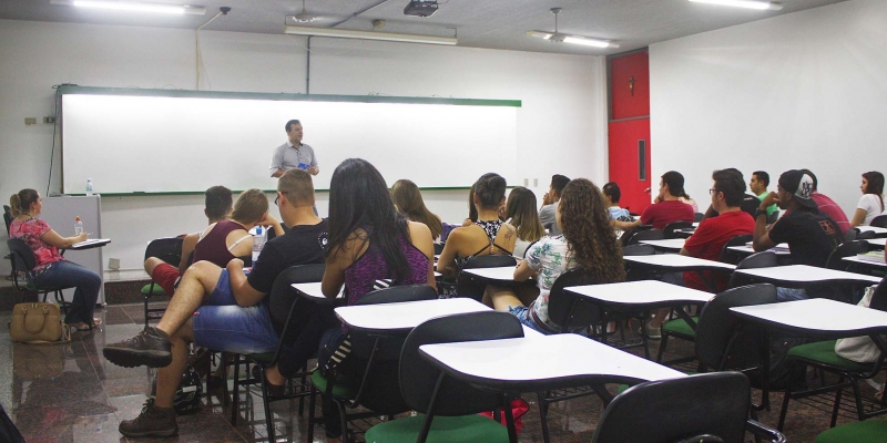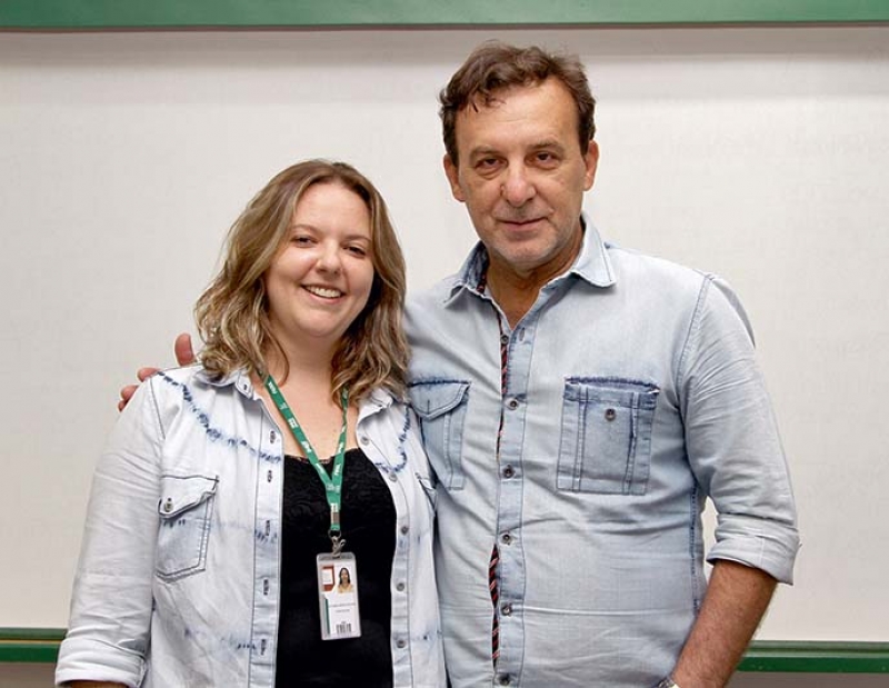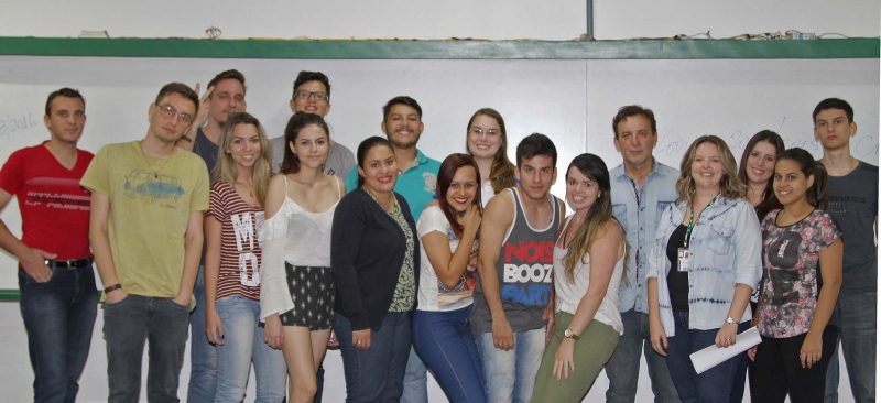 Clóvis Grelak palestrou para alunos do 1º e 5º períodos, nas disciplinas ministradas pela professora Tatiana Bilhar