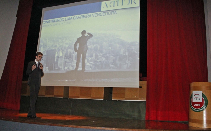 Os calouros do Centro Universitário FAG e da Faculdade Dom Bosco participaram, ontem (14), de palestra motivacional. O egresso de Engenharia de Controle e Automação, Arthur Schuler da Igreja, abordou o tema: "Construindo uma carreira vencedora".