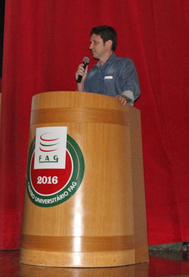 Na sequência, o coordenador do curso de Engenharia de Controle e Automação, professor Vânio da Maia demonstrou orgulho pelo egresso do curso estar presente para ministrar uma palestra. De acordo com o docente, "é válido esclarecer sobre o cenário econômico e político que nos encontramos que, apesar da turbulência, existe um mercado a ser explorado", diz. "É um orgulho para o curso de Engenharia de Controle e Automação, bem como para o Centro Universitário FAG ter uma figura que inspira a todos", complementa.