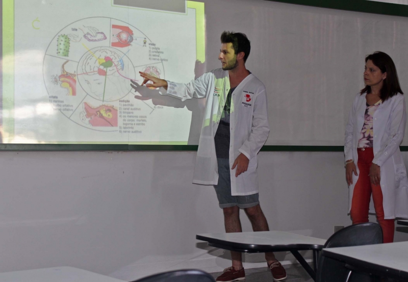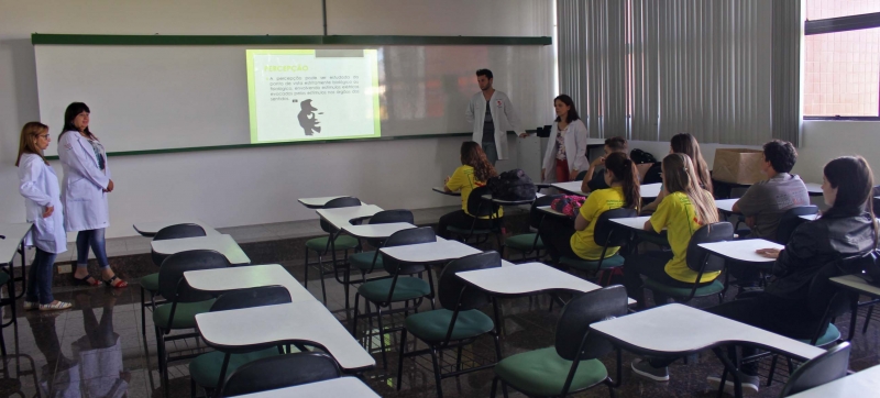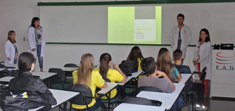 Foram desenvolvidas ações com vários públicos. Na tarde de ontem (16), o grupo formado pelos acadêmicos Rosicler Mattei, Selma Weiber, Eliane Weiber e Gabriel Sartori falou sobre percepção para os Jovens Aprendizes, do Programa mantido pela Fundação Assis Gurgacz. A atividade integra o Estágio Curricular em Práticas Grupais. ?Abordamos a percepção, através dos cinco sentidos - tato, audição, olfato, visão e paladar ? e sua relação com o cérebro. A percepção, do ponto de vista psicológico ou cognitivo, inclui a memória e os processos mentais que influenciam na interpretação dos dados recebidos. É a partir da percepção que o indivíduo organiza e interpreta as sensações?, esclarece Gabriel.