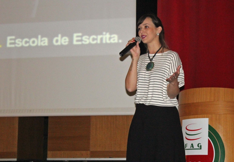 Em comemoração aos 15 anos dos cursos de Jornalismo e Publicidade e Propaganda do Centro Universitário FAG, ontem (17), aconteceu a Aula Inaugural Especial sobre Escrita Criativa, com Julie Fank - fundadora da Escola de Escrita.