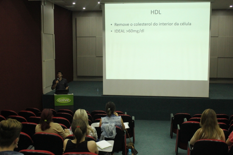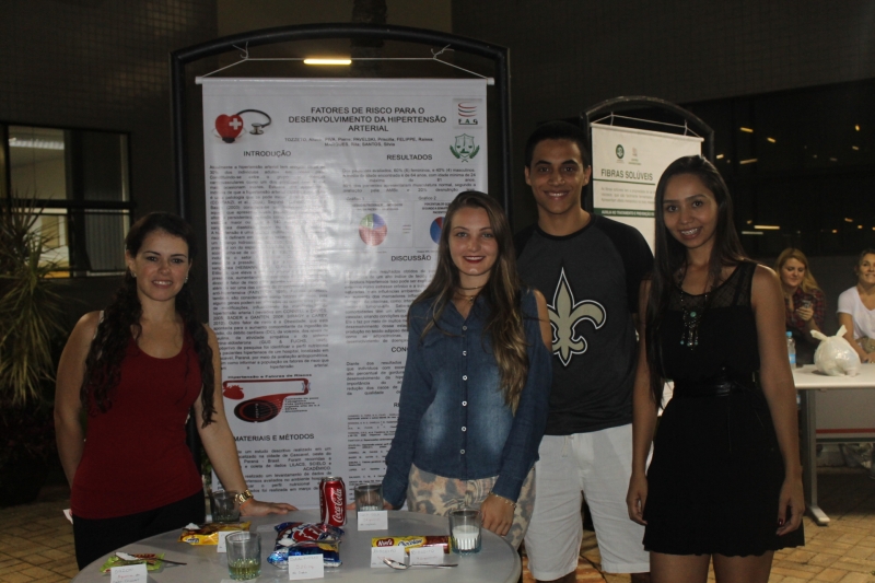 Entre os trabalhos apresentados, dois versavam sobre hipertensão, mas com objetivos distintos. Um deles foi o do grupo de Raissa Felippe, acadêmica do 7º período, que fez estágio no Hospital São Lucas. A pesquisa avaliou a quantidade de açúcar, sal e gorduras nos alimentos mais consumidos pelos pacientes e o reflexo disso em seu índice de massa corporal e pressão arterial. Para a acadêmica, a prática trouxe a oportunidade de conhecer a realidade das pessoas hipertensas. "Foi interessante realizar a pesquisa. Muitas vezes as pessoas não têm ideia das quantidades de açúcar e outros componentes danosos à saúde que estão em alimentos simples. Pudemos verificar na prática os malefícios dos alimentos gordurosos, além do excesso de açúcar e sal. Ainda, identificamos casos em que a hipertensão foi causada por fungos, pelo consumo de álcool e cigarro", comenta. Já Jéssica Zampiere fez sua pesquisa com base na Herperdia, que é um programa para hipertensos e diabéticos desenvolvido pelo governo, têm como função auxiliar os pacientes em seu tratamento, com reuniões que falam sobre o uso do medicamento e os benefícios de uma boa alimentação. A acadêmica realizou dinâmicas de grupo para que pudessem conhecer mais sobre os alimentos que consomem e que fazem mal a saúde dos hipertensos e diabéticos. Para ela, estagiar nessa área acrescentou muito no seu aprendizado, pois se trata de uma área difícil. "Foi uma ótima oportunidade para ouvir histórias e poder contribuir com a saúde das pessoas, aprendi muito", afirma.