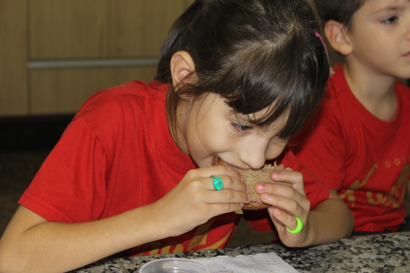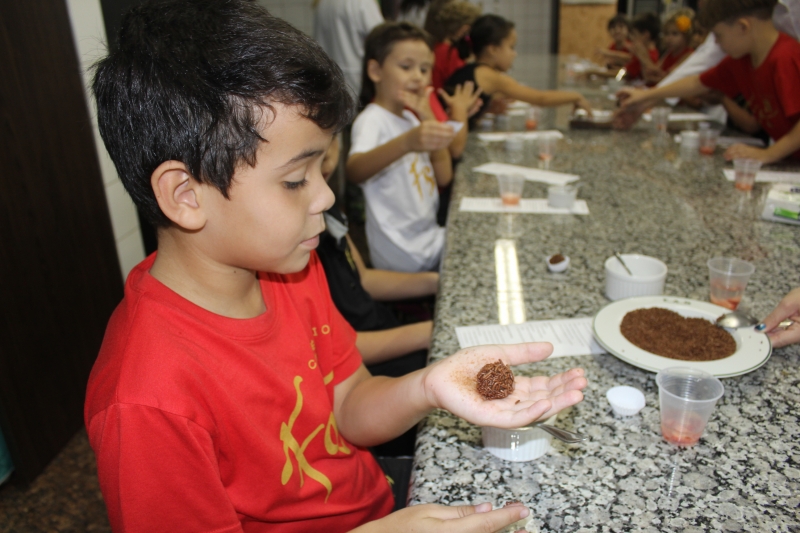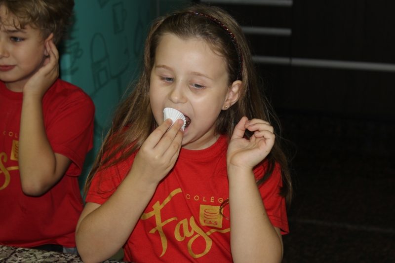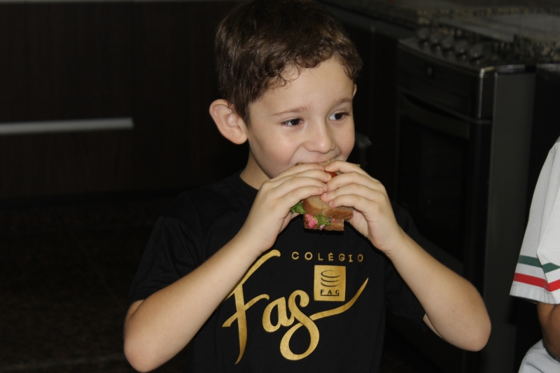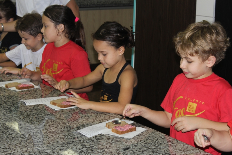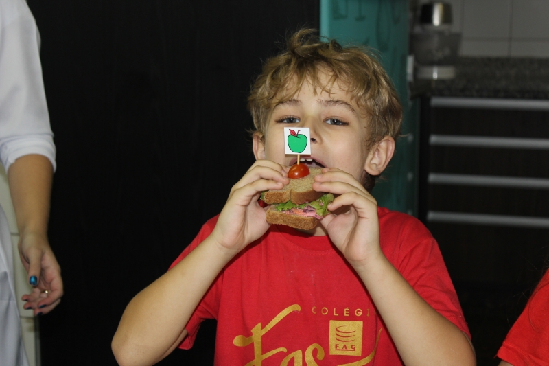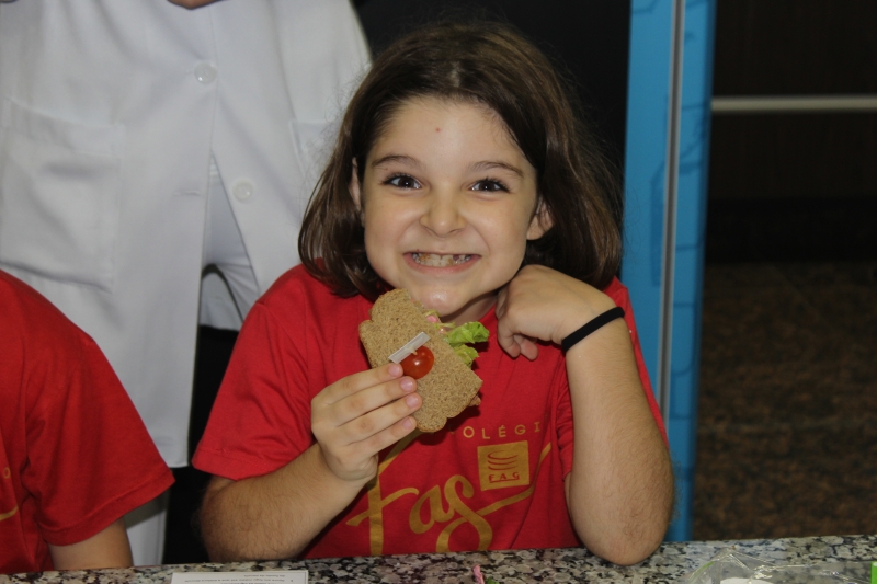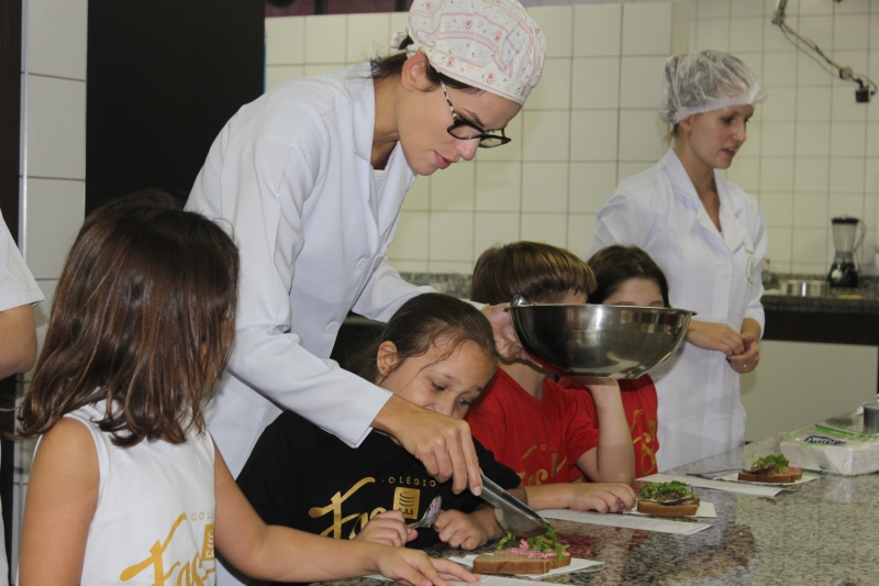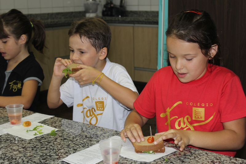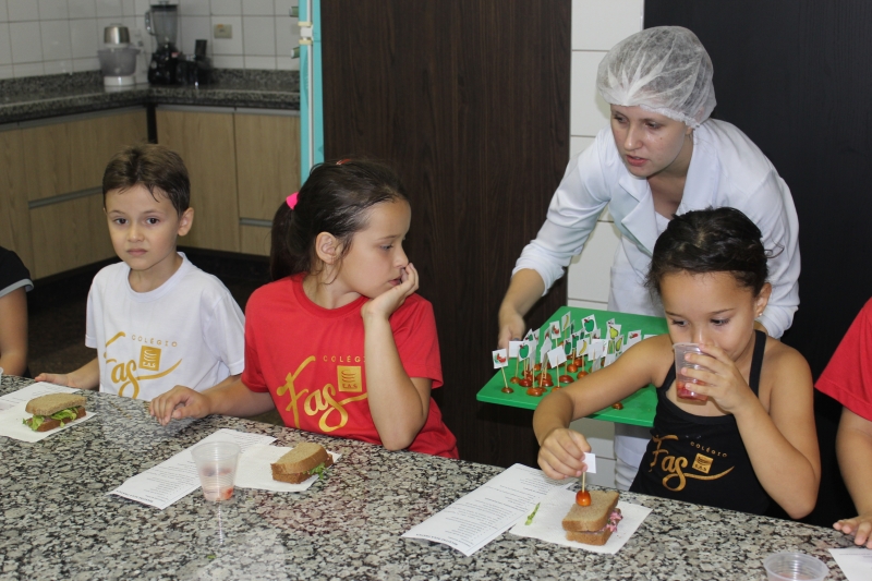 Sanduíche natural, Água aromatizada com morangos e Brigadeiro de banana foram as receitas trabalhadas pelas alunas do 7º período de Nutrição do Centro Universitário FAG, com os estudantes - do 1º ao 5º ano - do Colégio FAG, em oficina realizada no último dia 21.