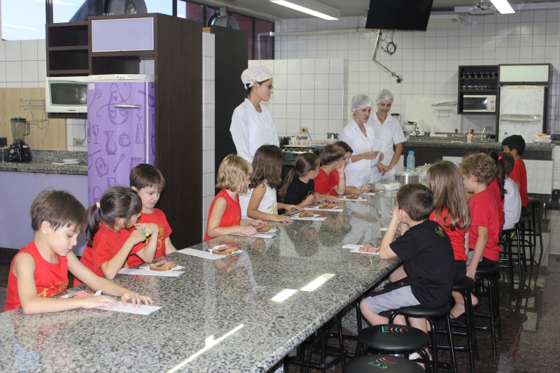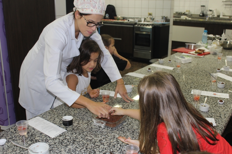 Segundo ela, o estágio é desenvolvido em várias escolas, os grupos trabalham com o mesmo tema, mas cada um monta a sua aula e as receitas que serão desenvolvidas.