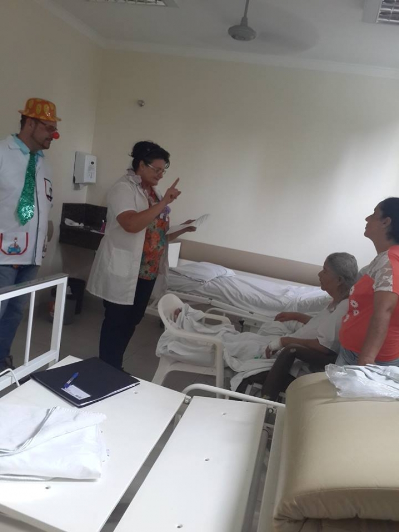 O projeto "Contando Histórias em Instituições de Saúde" tem parceria da egressa de Educação Física do Centro Universitário FAG, Sonia Siqueira, responsável por preparar os alunos do curso para visitarem os pacientes nos leitos e, com acompanhamento dos familiares, contarem histórias divertidas.