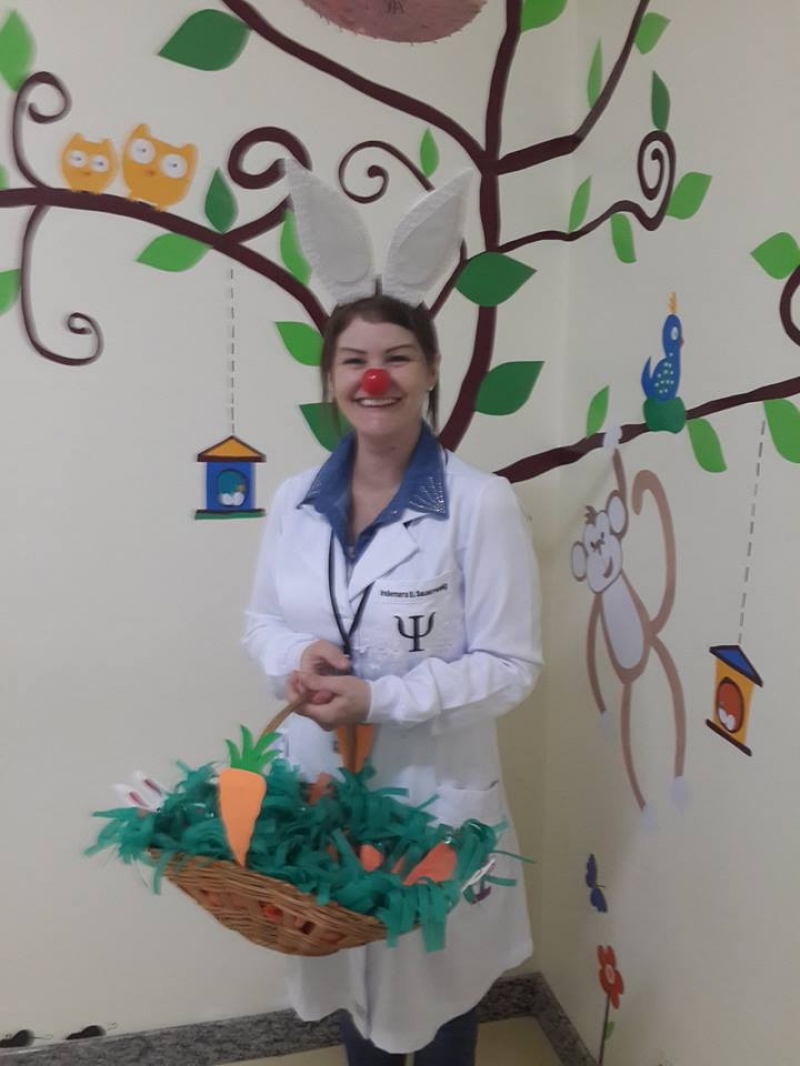 No último dia 19, os acadêmicos de Psicologia do Centro Universitário FAG retornaram às atividades que envolvem os projetos "Brincando no Hospital" e "Contando Histórias em Instituições de Saúde". E no feriado de Páscoa desenvolveram ações especiais com os pacientes, entregando lembrancinhas e animando o Hospital.