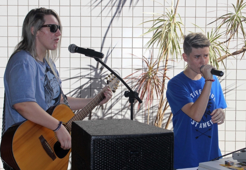 Este ano, a 3ª edição do Intervalo Cultural comemorou o Dia Mundial da Saúde. A atividade, organizada pelo curso de Psicologia do Centro Universitário FAG, trouxe, na noite de ontem (07) e na manhã de hoje (08) duas apresentações culturais. Ontem a acadêmica do 3º período de Educação Física, Michele Mees fez uma apresentação de zumba, e hoje a aluna do 1° período de Educação Física - matutino, Tauana Ritter, fez uma apresentação musical.