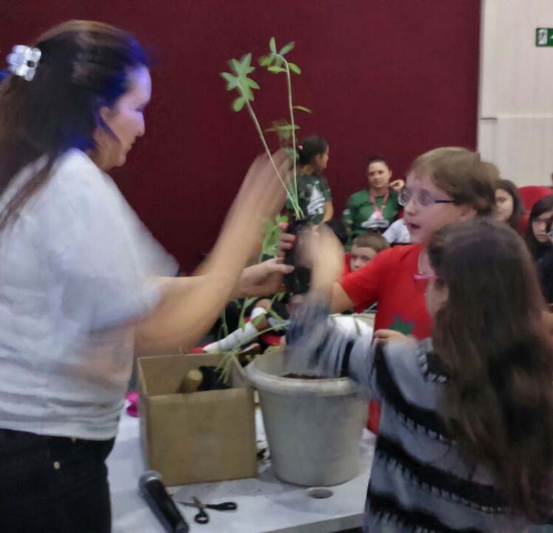 Todos os alunos do Colégio receberam, ao final da palestra, uma plantinha (de nome de Crotalária) para o plantio no jardim ou no quintal de casa, pois esta espécie atrai a libélula, que é um inseto predador do mosquito transmissor da Dengue, Zika Vírus e Chicungunha.