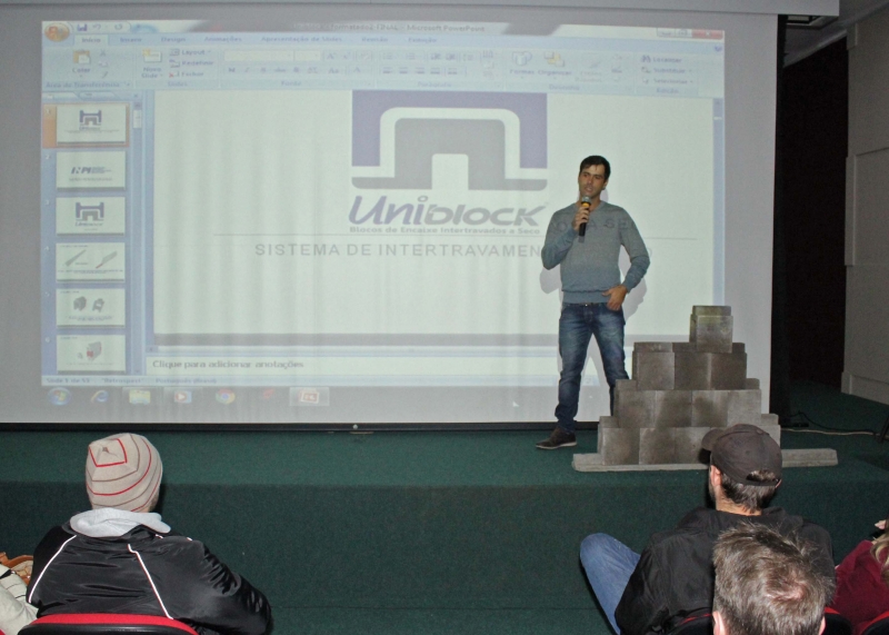 Foi a primeira vez que a empresa demonstra seu engenho e escolheu o público universitário para apresentar a informação. "Trata-se de um sistema novo de construção que oferece vantagens, uma vez que não é assentado de forma convencional", conta o sócio da Dectop, Edson Luiz Dallagnol. "O bloco estrutural contém 40% de sua totalidade autotravada", finaliza.
