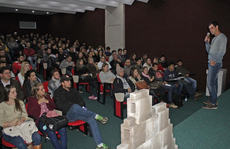 Na noite de ontem (27), os acadêmicos do 4º, 6º e 8º período noturno e 7º período (noturno e integral) de Engenharia Civil do Centro Universitário FAG conheceram uma novidade do mercado da construção civil: "Bloco de Encaixe Intertravado a Seco". Uma ideia patenteada pela empresa Dectop Construtora e Topografia, situada na cidade de Capitão Leônidas Marques, que trouxe aos alunos sua exclusividade de sua criação.