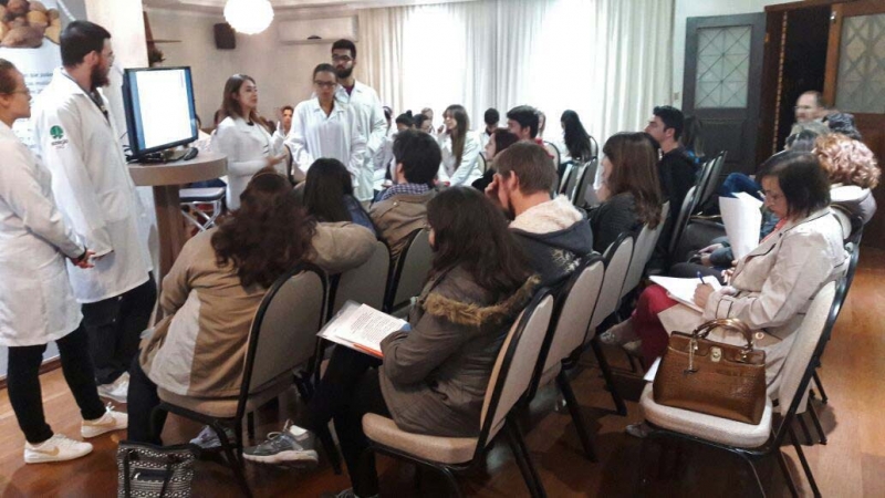 No dia 26 de abril, os acadêmicos de Nutrição, do Centro Universitário FAG, ministraram uma aula de Educação Nutricional para um grupo de adultos de Cascavel. A ação faz parte do processo de metodologia ativa adotado nas disciplinas de Educação Nutricional e Marketing em Nutrição, ministradas pela professora Jaciara Reis. Segundo ela, o objetivo é inserir o aluno no ambiente que possibilite a aprendizagem através da ação, da relação com a comunidade, que ajuda no amadurecimento profissional no processo de Educação nutricional.