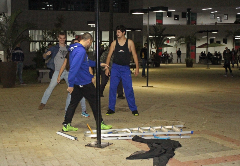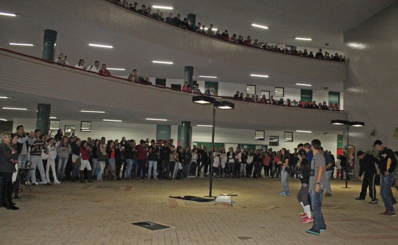A atividade faz parte da disciplina de Dança, ministrada pela docente Isabela dos Anjos, e teve por objetivo avaliar o 2º bimestre. "Fomos divididos em dois grupos e nos preparamos ao longo da semana", conta Mateus Hoffelder, acadêmico do 7º período.